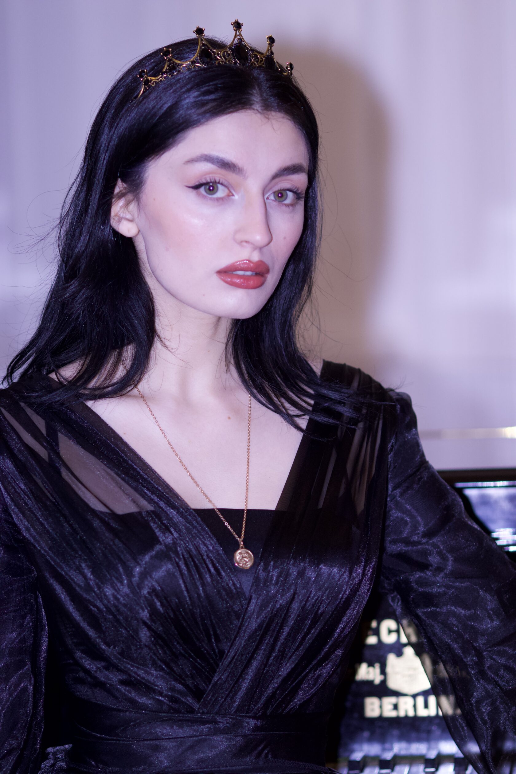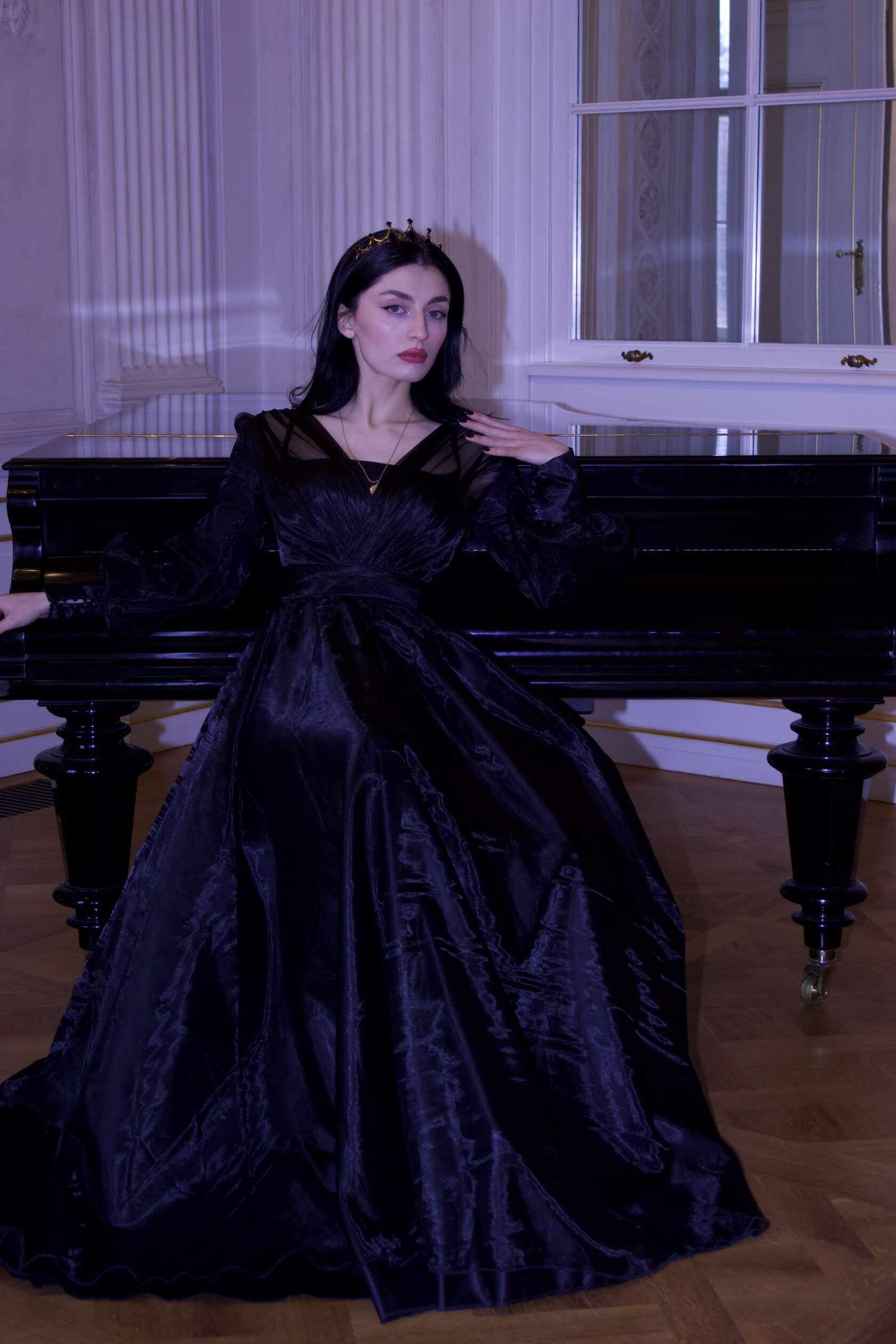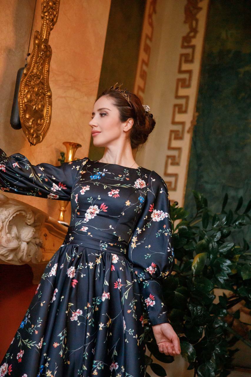 Платье из расшитой черной паетки и мелких жемчугов, подкладка платье из атласа. Так же данное платье имеет корсет, что дает возможность регулировать его на один размер больше и меньше. Размер S/M